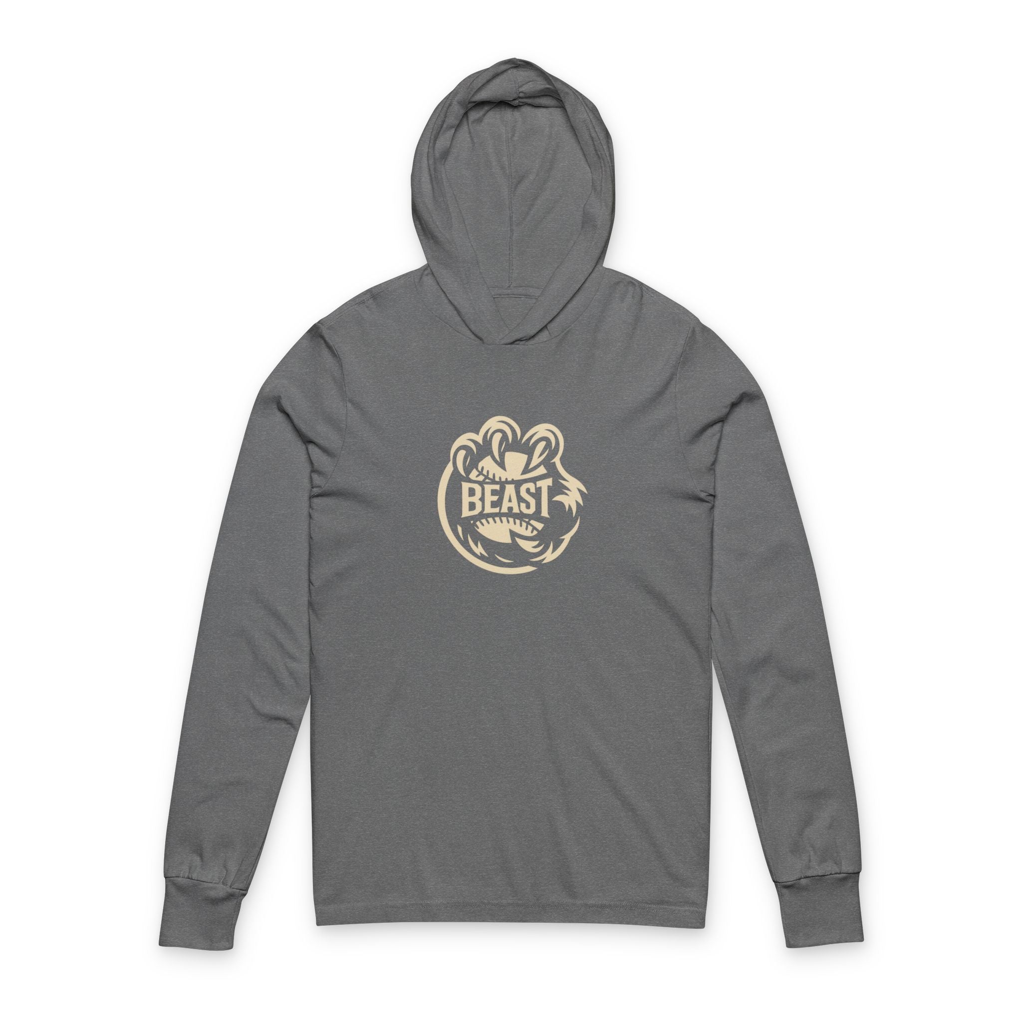 A lightweight hooded long sleeve that blends laid-back comfort with bold attitude. The soft airlume combed cotton feels barely-there against the skin, while the clean, centered “BEAST” emblem adds a punch of personality. Wear it on cool mornings or late-night workouts — it layers easily under jackets or over tees without feeling bulky. The side-seamed silhouette keeps the shape wash after wash, and the subtle crossover V at the neckline gives a polished finish. This hooded long sleeve moves with you, whether you’re chasing a run, heading to the gym, or lounging at home after a packed day.